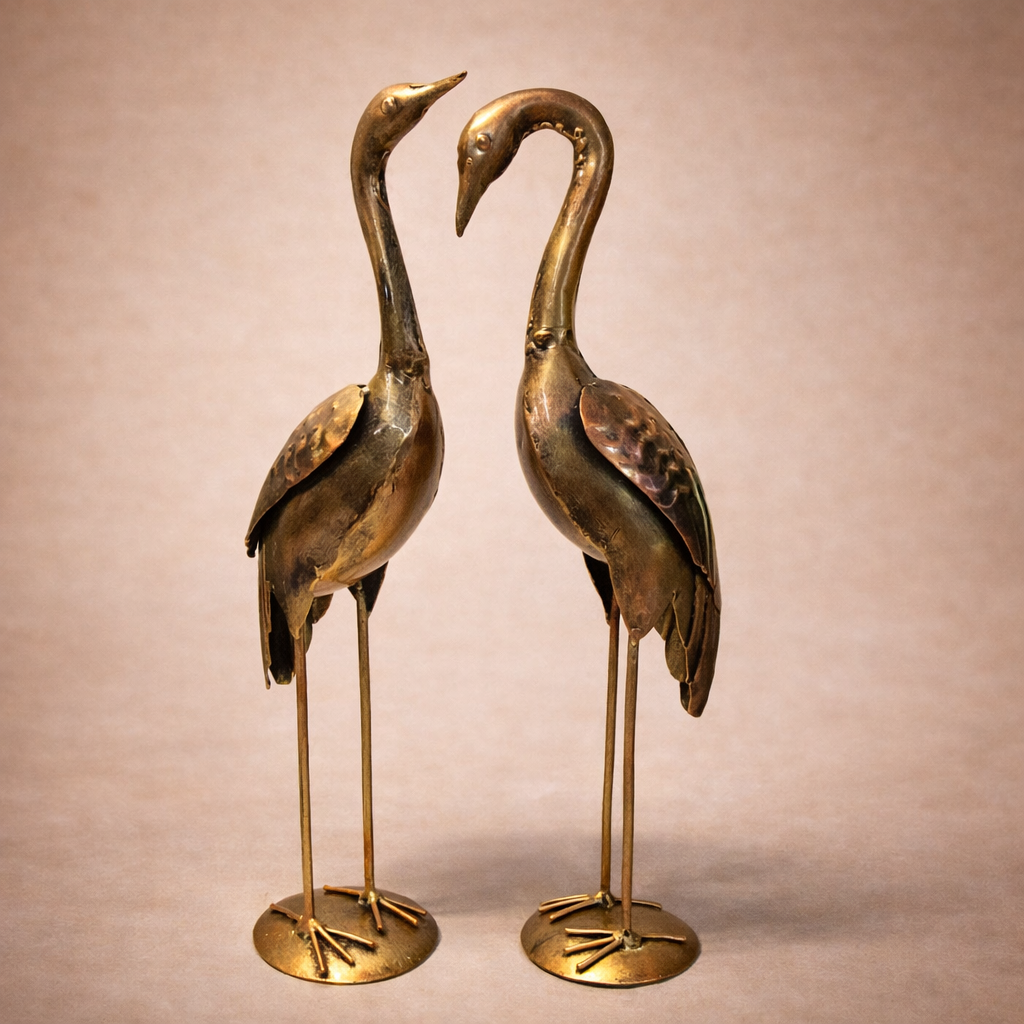 Handcrafted decorative sculptures made from wood, metal, and mixed materials, designed for...